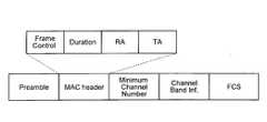 端末側は、1つまたは一部の割り当てチャネルで、RTSフレームもしくは同等の機能を持つ制御フレームを受信し(キャリアセンスについてはすべてのチャネルで行う)、CTSフレームもしくは同様の機能を持つ制御フレームを、キャリアセンスでアイドルであったすべてのチャネルで返す。そして、キャリアセンスがアイドルであったすべての割り当てチャネルで待ち受け動作をし、データフレームの受信を待機する。基地局は、CTSフレームが返されたすべてのチャネルもしくはその一部でデータフレームを送信する。The terminal side receives an RTS frame or a control frame having an equivalent function on one or a part of the assigned channels (carrier sensing is performed on all channels), and receives a CTS frame or a control frame having a similar function. Return on all channels that were idle in career sense. Then, the standby operation is performed on all the assigned channels whose carrier sense is idle, and the reception of the data frame is awaited. The base station transmits data frames on all channels or parts of CTS frames that have been returned.