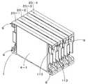 FIG. 8A is a perspective view illustrating a configuration example of the first bus bar, and FIG. 8B is a perspective view illustrating a configuration example of the second bus bar. Thefirst bus bar 113 is a conductive member made of a conductive material such as copper or aluminum that electrically connectsadjacent battery units 20. Thesecond bus bar 114 is a conductive member made of a conductive material made of copper, aluminum or the like that electrically connects the two battery cells 4 constituting onebattery unit 20.