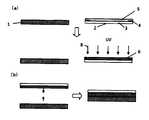 (工程3) 貼り合された光学基材における未硬化部分を有する硬化物層に、遮光部を有する光学基材を通して、紫外線を照射して、該硬化物層を硬化させる工程。