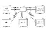 広告有コンテンツがコンテンツ表示装置3に表示されている場合、コンテンツには、広告配信装置2から配信される付加広告とは異なる別のスポンサーの原広告が表示されるため、広告配信装置2が付加広告を配信してしまうと、原広告によって視聴者に与えると期待される効果(例えば、販売促進の効果等)を低減させてしまう恐れがある。そのため、広告配信装置2は、図2に示したように、コンテンツ表示装置3と情報処理端末4のうちいずれか一方に広告有コンテンツが表示されている場合、コンテンツ表示装置3と情報処理端末4のいずれにも付加広告を配信しない(図2において「×」によって示す)。When the advertisement-containing content is displayed on thecontent display device 3, since the sponsor's original advertisement different from the additional advertisement distributed from theadvertisement distribution device 2 is displayed in the content, theadvertisement distribution device 2 adds If the advertisement is distributed, there is a risk that effects expected to be given to the viewer by the original advertisement (for example, sales promotion effect, etc.) may be reduced. Therefore, as shown in FIG. 2, theadvertisement distribution device 2 has thecontent display device 3 and theinformation processing terminal 4 when the advertising content is displayed on either thecontent display device 3 or theinformation processing terminal 4. No additional advertisement is distributed to any of these (indicated by “x” in FIG. 2).