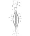 図2および図3に示されるように、除去部材5のストラット5aは周方向に90度ずつずらして配置される。またストラット5aには周方向に突出する凸部5bが複数形成されており、当該凸部5bで挟まれた薄板状部分には略菱型の孔5cが複数形成されている。As shown in FIGS. 2 and 3, thestruts 5a of the removingmember 5 are arranged so as to be shifted by 90 degrees in the circumferential direction. Thestrut 5a is formed with a plurality ofconvex portions 5b projecting in the circumferential direction, and a plurality of substantially diamond-shapedholes 5c are formed in a thin plate portion sandwiched between theconvex portions 5b.