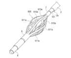 除去部材500は、アウターカテーテル2に対して図14中の矢印方向に移動するように操作が行われることにより、アウターカテーテル2内に収納されて縮経された状態と、図15、図16に示されるようにアウターカテーテル2の先端開口2aから突出し、径方向に隆起した隆起状態との間で変形可能なように構成されている。除去部材500によって閉塞物を除去する際には、除去部材500をアウターカテーテル2の先端開口2aから突出させ、後述する基端側操作により除去部材500を隆起させられた隆起状態とし、除去部材500により閉塞物を除去する処置が行われる。Theremoval member 500 is accommodated in theouter catheter 2 by being operated so as to move in the direction of the arrow in FIG. As shown in the figure, theouter catheter 2 protrudes from thedistal end opening 2a and is configured to be deformable between a radially raised state and a raised state. When removing the obstruction by theremoval member 500, theremoval member 500 is protruded from the distal end opening 2a of theouter catheter 2, and theremoval member 500 is raised by a proximal-end operation to be described later. A treatment for removing the obstruction is performed.