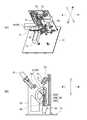 As shown in FIG. 7B, the pressing mechanism 80 includes a rod driving unit 81 and a rod 82 that presses the mounting base 11 </ b> A of the plunger 10 in the cartridge 1. The direction in which the rod 82 pushes the mounting base 11A is inclined 45 degrees with respect to the vertical direction, not the vertical direction. For this reason, when the plunger 10 is pushed by the pressing mechanism 80, the rotating body 61 is rotated 45 degrees, and the longitudinal direction of the cartridge 1 is matched with the moving direction of the rod 82.