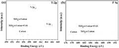请参阅图3,图3为本发明所述的一种具有紫外防护和耐水洗特殊浸润性功能织物表面的XPS谱图。如图3(a)所示,制备的沉积纳米TiO2织物表面出现了明显的Ti峰,相比于未修饰的纳米TiO2织物,如图3(b)所示,在氟硅烷修饰过的纳米TiO2织物表面探测到氟元素信号峰,说明氟硅烷已成功修饰到纳米TiO2织物表面,并赋予织物超疏水特殊浸润性。Please refer to FIG. 3. FIG. 3 is an XPS spectrum of a surface of a fabric having ultraviolet protection and water-washing special infiltrating function according to the present invention. As shown in Fig. 3(a), a significant Ti peak appeared on the surface of the deposited nano-TiO2 fabric, compared to the unmodified nano-TiO2 fabric, as shown in Fig. 3(b), modified with fluorosilane. The fluorine signal peak was detected on the surface of the nano-TiO2 fabric, indicating that the fluorosilane has been successfully modified to the surface of the nano-TiO2 fabric, and the fabric is super-hydrophobic and particularly wettable.