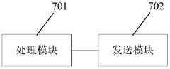 图7为本发明SDN中进行通信的装置实施例三的结构示意图;所述装置为网络设备;如图7所示,本实施例的装置可以包括:处理模块701及发送模块702。其中,处理模块701,用于生成控制策略;所述控制策略包括匹配条件及与所述匹配条件对应的操作信息;发送模块702,用于将所述控制策略发送至网络设备,其中,所述操作信息用于对与所述匹配条件相匹配的所述网络设备接收的消息进行处理,所述消息包括信令消息。FIG. 7 is a schematic structural diagram of Embodiment 3 of a device for performing communication in an SDN according to the present invention; the device is a network device; as shown in FIG. 7, the device in this embodiment may include: a