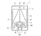 機器ケース2の前面における第2側面1d側の端部には、ユーザの手の指によって操作される操作領域30が設けられている。操作領域30は、後述する押しボタン150の一部となっている。つまり、押しボタン150の一部が機器ケース2の前面における第2側面1d側の端部から露出しており、その露出部分が操作領域30となっている。ユーザは、操作領域30を押すことによって、押しボタン150を押すことができる。なお、操作領域30の位置及び形状は、図1,2に示される位置及び形状に限られない。Anoperation area 30 operated by a finger of the user's hand is provided at the end of thedevice case 2 on thesecond side surface 1d side on the front surface. Theoperation area 30 is a part of apush button 150 described later. That is, a part of thepush button 150 is exposed from the end portion on thesecond side surface 1 d side on the front surface of thedevice case 2, and the exposed portion is theoperation region 30. The user can press thepush button 150 by pressing theoperation area 30. The position and shape of theoperation area 30 are not limited to the position and shape shown in FIGS.