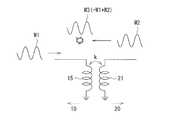 図3は、アクティブ負荷変調の動作を模式的に表すものである。通信装置10のコイル15は、キャリア信号W1に基づいて磁界を生成し、通信装置20のコイル21は、スイッチ23A,23Bがオン状態になる期間において、キャリア信号に同期した信号W2に基づいて磁界を生成する。そして、通信装置10の復調部17は、キャリア信号W1および信号W2の合成信号W3に基づいて、復調動作を行う。この合成信号W3は、以下のように表すことができる。