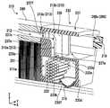 インシュレータ本体237は、第1冷却室211aと、インシュレータ本体237の水平方向の+X側に位置する収容凹部237aと、インシュレータ本体237の水平方向の-X側に位置する収容凹部237bと、インシュレータ本体237の水平方向の+X側に位置するリブ部237cと、インシュレータ本体237の水平方向の-X側に位置するリブ部237dと、を有する。すなわち、上側インシュレータ233は、第1冷却室211aと、収容凹部237aと、収容凹部237bと、リブ部237cと、リブ部237dと、を有する。The