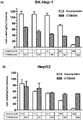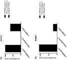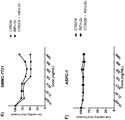 FIG. 14A and 14B are graphs showing the effect of CTB006 or gemicitabone treatment on tumor progression in mice using an MIA-PaCa-2 (pancreatic cancer cells) subcutaneous model. 14A shows the effect of CTB006 or gemicitabone treatment on tumor volume, and FIG. 14B shows the effect of CTB006 or gemicitabone treatment on tumor weight. The “+” signs at the bottom of FIG. 14A indicates that the mice were treated that day.