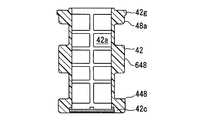第2フレーム42は、下端の端部梁42cの内側角部に、環状の受け溝42eを有する。受け溝42eは、第2フレーム42の端部から端部梁42cの内側へ第3端板47を受け入れるための凹部を提供する。端部梁42cは、受け溝42eの入口に、比較的小さい内径をもつ小径部42jを有する。小径部42jは、第3端板47を受け入れ可能な内径を有する。小径部42jは、第3端板47の径方向における位置決めに貢献する。端部梁42cは、小径部42jより奥に、言い換えると上に、小径部42jより大きい内径をもつ大径部42kを有する。大径部42kは、受け溝42eの底部と、小径部42jとの間に形成されている。大径部42kは、小径部42jから上に向けて径方向外側へ広がるように傾斜する斜面と、円筒内面とによって区画形成されている。The