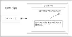 例如,图5示出了可以实现根据本发明的文件加密方法及与该文件加密的方法的智能电子设备。该智能电子设备传统上包括处理器710和以存储器720形式的计算机程序产品或者计算机可读介质。存储器720可以是诸如闪存、EEPROM(电可擦除可编程只读存储器)、EPROM、硬盘或者ROM之类的电子存储器。存储器720具有用于执行上述方法中的任何方法步骤的程序代码731的存储空间730。例如,用于程序代码的存储空间730可以包括分别用于实现上面的方法中的各种步骤的各个程序代码731。这些程序代码可以从一个或者多个计算机程序产品中读出或者写入到这一个或者多个计算机程序产品中。这些计算机程序产品包括诸如硬盘,紧致盘(CD)、存储卡或者软盘之类的程序代码载体。这样的计算机程序产品通常为如参考图6所述的便携式或者固定存储单元。该存储单元可以具有与图5的智能电子设备中的存储器720类似布置的存储段或者存储空间等。程序代码可以例如以适当形式进行压缩。通常,存储单元包括用于执行根据本发明的方法步骤的程序731’,即可以由例如诸如710之类的处理器读取的代码,这些代码当由智能电子设备运行时,导致该智能电子设备执行上面所描述的方法中的各个步骤。For example, FIG. 5 illustrates a file encryption method and encryption with the file according to the present invention.The method of intelligent electronic devices. The intelligent electronic device conventionally includes a processor 710 and a computer program product or computer readable medium in the form of a memory 720. Memory 720 can be an electronic memory such as a flash memory, EEPROM (Electrically Erasable Programmable Read Only Memory), EPROM, hard disk, or ROM. Memory 720 has a memory space 730 for