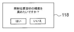 なお、本ステップ304の処理が実行されることで表示部86に表示される照射位置目印116は、ステップ300又はステップ302の処理が実行されることで導出された本画像内照射位置を示す目印である。Note that the