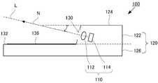 ここで、下段部分126の上面132に垂直な軸を垂直軸146、撮像レンズ112の光軸Lを含み下段部分126の上面132に垂直な面を第1の垂直面148、下段部分126の上面132に垂直で第1の垂直面148に垂直な面を第2の垂直面150a、150bとする。
