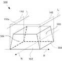 正四角錐140における底面142の辺142cを含む面156と底面142の辺142dを含む面158は、下段部分126の上面132を平面視した場合に、第2の垂直面150bに対して筐体120の開口部130側に位置している。したがって、正四角錐140の面156と面158は、筐体120の開口部130側に位置する面となる。The