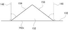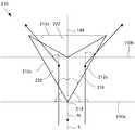 正四角錐140の面152と面154は、互いに第1の垂直面148に対して逆方向に傾斜している。したがって、正四角錐140の面152に入射した入射光160と正四角錐140の面154に入射した入射光160は、下段部分126の上面132を平面視した場合に、互いに異なる、第1の垂直面148に対して傾いた方向に反射される。The