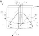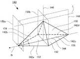 第2の垂直面150aは、底面142における角に位置する。第2の垂直面150bは、正四角錐140を横断する位置にある。また、第1の垂直面148は、撮像レンズ112の光軸Lを含むので、筐体120の開口部130に対して垂直になる。なお、これらの関係は他の実施の形態においても同様である。Here, the axis perpendicular to the