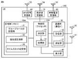 GPS信号受信部60は、GPS信号用アンテナ53を介して、GPS信号を受信する。受信されたGPS信号は、制御部10に送られる。放送波受信部70は、放送波用アンテナ54を介して、テレビおよびラジオの放送波を受信する。受信された放送波は、制御部10に送られる。時報電波受信部80は、時報電波用アンテナ55を介して、標準時を受信する。受信された標準時の情報は、制御部10に送られる。GPS信号、放送波、標準時の情報の利用の仕方については、後述する。The GPS
