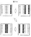 例えば7番目の棚100の搬送時に使用する形状参照先データ423は(F, 1)であり、8番目の棚100の搬送時に使用する形状参照先データ423は(7, 2)である。図18は、この棚設置データ420に従って棚100が配置されていく様子を表している。図18において塗り潰しで示すように、1列ずつ交互に棚100が設置される。前述したように、基本的には後列を配置する搬送ロボット200は前列に停止している搬送ロボット200の幾何形状に基づいて位置決めと角度を調整する。なお、図18の右下の配置の場合、左端の列を配置する搬送ロボット200は左壁の形状を参照しても良い。For example, the shape