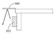 LED를 이용한 시각 피드백을 구현하는 경우, 도 8b 및 도 8c와 같이 복수 개의 LED가 피드백부(820)에 배열된다.  상기 LED(831, 832, 833)는 도 8b와 같이 상기 피드백부(820)의 윗 판(821)에서 아랫면을 향하여 안쪽 둘레 부분에 배열되거나, 또는 도 8c와 같이 쪽보드를 이용하여 PCB 바깥 옆면을 세워 상기 피드백부(820)의 옆면(822)에 배열될 수 있다.  또한, LED 빛의 확산성을 증대시키기 위해 도 8d와 같이, 상기 피드백부(820)의 옆면 위쪽이나 윗 부분에 높은 반사율을 가지는 소재(840, 이를 테면 필름형 거울, 확산 아크릴 등)가 추가 배치될 수도 있다.When implementing visual feedback using LEDs, a plurality of LEDs are arranged in the
