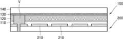 도전체(V)는 연결 전극(220)을 관통하도록 형성될 수 있다. 선택적으로 도전체는 공통 전극(130)을 관통하도록 형성될 수도 있다(도 15 참조). 또한, 선택적으로, 도전체(V)는 연결 전극(220) 및 공통 전극(130)을 관통하도록 형성될 수 있다. 즉, 도전체(V)는 연결 전극(220) 및 공통 전극(130) 중 적어도 하나를 관통하도록 형성될 수 있다.The conductor V may be formed to penetrate the connection electrode 220. Alternatively, the conductor may be formed to penetrate the common electrode 130 (see FIG. 15). Also, optionally, the conductor V may be formed to penetrate the connection electrode 220 and the common electrode 130. That is, the conductor V may be formed to penetrate at least one of the connection electrode 220 and the common electrode 130.