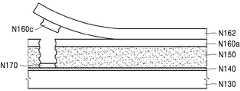 점착층(N160)은 접착성을 가지며, 열이나 UV에 의해 경화될 수 있다. 다른 예에 따르면, 점착층(N160)은 상온에서 접착성을 가지지 않고, 열이 가해진 후에 접착성을 가질 수 있다.The adhesive layer N160 has adhesiveness and may be cured by heat or UV. According to another example, the adhesive layer N160 may not have adhesiveness at room temperature and may have adhesiveness after heat is applied.