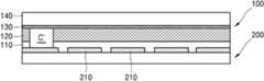 도 2를 참조하면, 기판(200)의 적어도 일부 영역을 제거하여 연결 영역(C)을 형성하는 단계가 수행된다. 상기 연결 영역(C)은, 도 2에 나타난 바와 같이 기판(200)을 관통하는 관통 홀의 형태로 형성될 수도 있고, 기판(200) 전체를 관통하지 않는 홈(groove)의 형로 형성될 수도 있다. 상기 연결 영역(C)이 형성됨으로써, 상기 관통 홀 또는 상기 홈에 의해 기판(200) 내로 삽입된 연결 전극(220)이 노출될 수 있다.Referring to FIG. 2, the forming of the connection region C may be performed by removing at least some regions of the substrate 200. As shown in FIG. 2, the connection region C may be formed in the form of a through hole penetrating the substrate 200 or may be formed in the form of a groove that does not penetrate the entire substrate 200. As the connection region C is formed, the connection electrode 220 inserted into the substrate 200 by the through hole or the groove may be exposed.