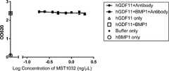 In another embodiment, an anti-myostatin antibody of the present invention does not bind to GDF11.  In certain embodiments, an anti-myostatin antibody of the present invention does not inhibit activation of GDF11.  In certain embodiments, the anti-myostatin antibody does not block the release of mature GDF11 from latent GDF11.  The anti-myostatin antibody of the present invention does not block either proteolytic or non-proteolytic release of mature GDF11 from latent GDF11.  In certain embodiments, the anti-myostatin antibody does not block the proteolytic cleavage of latent GDF11.  In certain embodiments, the anti-myostatin antibody does not block access of a protease to latent GDF11 (especially, to the proteolytic cleavage site of latent GDF11).  In further embodiments, the protease may be a BMP1/TLD family metalloprotease such as BMP1, TED, tolloid-like protein-1 (TLL-1), or tolloid-like protein-2 (TLL-2).  The non-proteolytic release as used herein means a spontaneous release of mature GDF11 from latent GDF11, which is not accompanied by the proteolytic cleavage of latent GDF11.  The non-proteolytic release includes, for example, a release of mature GDF11 by incubating latent GDF11 e.g., at 37 degrees C in the absence of a protease that cleaves the latent GDF11.  Most of the anti-myostatin antibodies known to date were not specific for myostatin. These antibodies have high affinity for other members of the TGF-beta superfamily, such as GDF11 and neutralize the biological activities of them. GDF11 plays an important role during embryogenesis, and is responsible for homeotic transformation of the axial skeleton. Homozygous GDF11 knockout mice are perinatal lethal, mice with one wild type copy of the GDF11 gene are viable but have skeletal defects. Since GDF11 plays an important role during embryogenesis, an antagonist that inhibits GDF11 poses theoretical safety risks that could present either as toxicity in treated patients or as reproductive toxicity in, e.g., women of childbearing potential. Thus, there is a need for specific inhibition of myostatin activity in treatments of myostatin-associated disorders for which it is desirable to increase muscle mass, size, strength, etc., particularly in women with childbearing potential.