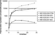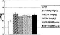 The concentration of anti-latent myostatin antibody in mouse plasma was measured by ELISA. Anti-human IgG (gamma -chain specific) F(ab')2 antibody fragment (Sigma) was dispensed onto a Nunc-ImmunoPlate MaxiSorp (Nalge Nunc International) and allowed to stand overnight at 4 degrees C to prepare anti-human IgG-immobilized plates. Calibration curve samples having plasma concentrations of 2.5, 1.25, 0.625, 0.313, 0.156, 0.078, and 0.039 micro g/ml, and mouse plasma samples diluted 100-fold or more were prepared. Then, the samples were dispensed onto the anti-human IgG-immobilized plates, and allowed to stand for 1 hour at room temperature. Subsequently, Goat Anti-Human IgG (gamma -chain specific) Biotin conjugate (Southern Biotech) was added to react for 1 hour at room temperature. Then, Streptavidin-PolyHRP80 (Stereospecific Detection Technologies) was added to react for one hour at room temperature, and chromogenic reaction was carried out using TMB One Component HRP Microwell Substrate (BioFX Laboratories) as a substrate. After stopping the reaction with 1 N sulfuric acid (Showa Chemical), the absorbance at 450 nm was measured by a microplate reader. The concentration in mouse plasma was calculated from the absorbance of the calibration curve using the analytical software SOFTmax PRO (Molecular Devices). The time course of antibody concentration in plasma after intravenous administration of anti-latent myostatin antibody and latent myostatin measured by this method is shown in Figure 30.