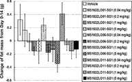 The concentration of anti-latent myostatin antibody in mouse plasma was measured by a Gyrolab BioaffyTM CD (Gyros) in the experiment PK-4. Biotinylated anti-human IgG Fc antibody was flowed over the streptavidin bead column within the microstructure of the CDs. Calibration curve samples having plasma concentrations of 0.5, 1, 2, 4, 8, 16, and 32 micro g/ml spiking plasma concentrations of 5 mg/mL of human normal immunoglobulin (CSL Behring AG) and 200 micro g/ml of mouse latent myostatin, and mouse plasma samples diluted 25-fold or more spiking plasma concentrations of 200 micro g/ml of mice latent myostatin were prepared. Then the samples were added into CDs and flowed over the bead column. Subsequently, Alexa-labeled Goat anti-human IgG polyclonal antibody (BETHYL) was added into CDs and flowed over the bead column. The concentration in mouse plasma was calculated from the response of the calibration curve using the Gyrolab Evaluator Program. The time course of antibody concentration in plasma after intravenous administration of anti-latent myostatin antibody and latent myostatin measured by this method is shown in Figure 28B.