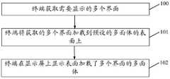 终端获取需要显示的多个界面;将获取的多个界面加载到预设的多面体的表面上;并在显示屏上显示表面加载了多个界面的多面体。The terminal acquires multiple interfaces that need to be displayed; loads the acquired multiple interfaces onto the surface of the preset polyhedron; and displays a polyhedron on which a plurality of interfaces are loaded on the display screen.