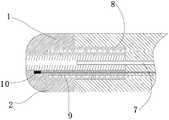 所述远端管体4端部设置有凹槽,所述正电极1、负电极2上设置有与所述凹槽配合的凸起,所述正电极1、负电极2通过所述凸起安装在远端管体4的端部,所述正电极1和负电极2下方设置有温度传感器10,其焊接于正电极1和负电极2内,本实施例中温度传感器10为2根热电偶导线焊接而成,所述正电极导线8和负电极导线9从远端管体4内通过所述凹槽连接到正电极1、负电极2上,这种结构更方便安装,加工更简单。The end of the