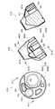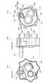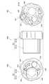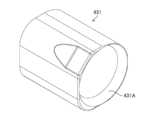 図34はガイドブッシュ431の外観斜視図である。図35の符号35Aはガイドブッシュ431の側面図であり、符号35Bはガイドブッシュ431をその基端側から見た背面図である。また、図35の符号35Cは符号35Aで示すガイドブッシュ431の「35(1)」-「35(1)」線に沿う断面図であり、符号35Dは同ガイドブッシュ431の「35(2)」-「35(2)」線に沿う断面図である。図36は、ガイドブッシュ431をその基端側から見た背面斜視図である。FIG. 34 is an external perspective view of theguide bush 431. FIG. 35A is a side view of theguide bush 431, and 35B is a rear view of theguide bush 431 viewed from the base end side. 35 is a cross-sectional view taken along the line “35 (1)”-“35 (1)” of theguide bush 431 indicated byreference numeral 35A, andreference numeral 35D is “35 (2)” of theguide bush 431. FIG. 3 is a cross-sectional view taken along line “-35 (2)”. FIG. 36 is a rear perspective view of theguide bush 431 as viewed from the base end side.