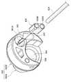 図34から図36と、既述の図24及び図29とに示すように、ガイドブッシュ431は、例えば樹脂材料[ポリカーボネート(POLYCARBONATE)等]によって略筒形状に形成されており、内視鏡固定具430(保持枠432)の基端側に当接して設けられている。なお、ガイドブッシュ431と内視鏡固定具430との間に隙間が形成されていてもよい。また、ガイドブッシュ431の中心軸の位置は、内視鏡固定具430の中心軸の位置と一致(略一致を含む)している。As shown in FIGS. 34 to 36 and FIGS. 24 and 29 described above, theguide bush 431 is formed in a substantially cylindrical shape by, for example, a resin material [polycarbonate (POLYCARBONATE) or the like], and is fixed to the endoscope. It is provided in contact with the base end side of the tool 430 (holding frame 432). Note that a gap may be formed between theguide bush 431 and theendoscope fixture 430. Further, the position of the central axis of theguide bush 431 coincides (including substantially coincident) with the position of the central axis of theendoscope fixture 430.