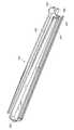 図15及び図16に示すように、長筒体322は、例えばステンレンス鋼[stainless steel 304(日本工業規格で規定のSUS304)等]によって、既述の長手軸300aを中心軸として延びた円筒状に形成されている。この長筒体322の基端には、長筒体322の他の部分よりも拡径されたテーパ部322Aが組立性を上げるために形成されている。As shown in FIGS. 15 and 16, the longcylindrical body 322 is made of, for example, a stainless steel [stainless steel 304 (SUS304 specified in Japanese Industrial Standard)] extending in the above-describedlongitudinal axis 300a as a central axis. Is formed. At the base end of the longcylindrical body 322, a taperedportion 322A having a diameter larger than that of other portions of the longcylindrical body 322 is formed in order to improve assemblability.