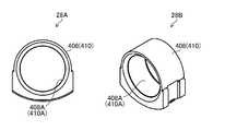 図28の符号28Aは、後規制端408及び前規制端410の正面図であり、符号28Bは、後規制端408及び前規制端410の外観斜視図である。図28に示すように、後規制端408には処置具挿入部202が挿通する開口408Aが設けられ、前規制端410には処置具挿入部202が挿通する開口410Aが設けられる。28 is a front view of therear regulating end 408 and the front regulatingend 410, and 28B is an external perspective view of therear regulating end 408 and the front regulatingend 410. As shown in FIG. 28, therear regulating end 408 is provided with anopening 408A through which the treatmentinstrument insertion portion 202 is inserted, and the front regulatingend 410 is provided with anopening 410A through which the treatmentinstrument insertion portion 202 is inserted.