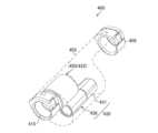 そこで、連結リング402に形成される係合孔412は、既述の図26及び図30等に示したように、突部436の上下方向の移動範囲のうちの任意の位置でこの突部436と係合する形状に形成、すなわち第1係合部404Aの範囲を超えてリング部404の周方向(上下方向)に延びる長孔として形成される。Therefore, theengagement hole 412 formed in the connectingring 402 is formed at any position in the vertical movement range of theprotrusion 436 as shown in FIGS. 26 and 30 described above. In other words, it is formed as a long hole extending in the circumferential direction (vertical direction) of thering portion 404 beyond the range of the first engagingportion 404A.