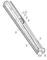隔壁部材324の上面には、隔壁部材324の基端から先端まで長手軸300aに平行な管取付溝330が形成されている。この管取付溝330には、後述の送液管424が取り付けられる。Atube mounting groove 330 parallel to thelongitudinal axis 300a is formed on the upper surface of thepartition member 324 from the proximal end to the distal end of thepartition member 324. Aliquid feed pipe 424 described later is attached to thepipe attachment groove 330.