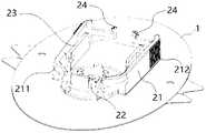 FIG. 4 illustrates an exploded view of the detailed structures of the support mount 2. As shown in FIG. 4, the support mount 2 is fixed on the medical adhesive tape 1, comprising a first installation structure, in this embodiment, three blocks 22, configured to mate the sensor body 4; a second installation structure, in this embodiment, a pair of release tabs 21, each of which further comprises a clamp part 211 and a ribbed part 212, configured to mate both the inserter 5 and the transmitter 3; a third installation structure, in this embodiment, a pair of flanges 23, configured to mate the groove on the transmitter 3; and a pair of hooks 24, configured to hook the rear part of the transmitter 3.