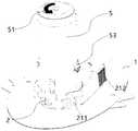 When the transcutaneous installation process of the sensing part 41 of the sensor probe 40 is finished, one needs to fix the sensor body 4 on the support mount 2 and remove the inserter 5 referring to FIG. 7. Rotate the inserter 5 according to the arrow mark 51 on the top of the shell of the inserter 5 to interlock the ring with hooks 43 on the sensor body 4 with the blocks 22 from the first installation structure until the inserter 5 reaches to a designated position and cannot be rotated anymore, during which process one may hear a snap sound from the ring with hooks 43 snap‐fitting the blocks 22. Then press the ribbed parts 212 of the release tabs 21 from the second installation structure to open the clamp parts 211 of the release tabs 21 and pull the inserter 5 along the longitudinal direction from the second installation structure of the support mount 2 to remove the inserter 5.