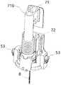Referring to FIG. 10 to FIG. 12, an embodiment of the instant ejection‐retraction mechanism in the present invention is provided. The instant ejection‐retraction mechanism comprises a first sliding block 71, a second sliding block 72, an ejecting spring 73, a retracting spring 74 and a guide needle 8, and the instant ejection‐retraction mechanism cooperates with the release buttons 53 to realize the instant ejection and retraction process of the guide needle 8.