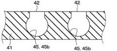 図7に示すように、枝通風路45bの内壁の断面形状は、丸形状である。これにより、通風シート本体41の剛性が高くなり、座席に乗員が着座した際に、通風シート本体41が潰れて通風路45の断面積が小さくなることが抑制される。なお、枝通風路45bの断面形状は、任意に設定することが可能である。As shown in FIG. 7, the cross-sectional shape of the inner wall of the branch ventilation path 45b is a round shape. Thereby, the rigidity of the ventilation sheet