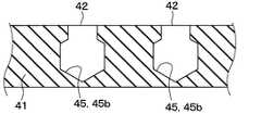 図8は、通風シート本体41が有する複数の通風路45を構成する幹通風路45aおよび枝通風路45bのうち、枝通風路45bの断面形状を示したものである。第2実施形態では、枝通風路45bの内壁の断面は、多角形状である。これにより、第2実施形態においても、第1実施形態と同様に、通風シート本体41の剛性が高くなり、座席に乗員が着座した際に、通風シート本体41が潰れて通風路45の断面積が小さくなることが抑制される。そのため、第2実施形態においても、通風シート40は、座席に乗員が着座したときの通風路45の通気抵抗の低下が抑制される。したがって、複数の開口部42から車室内に吹き出す風量を維持することで、乗員の快適性を高めることができる。この第2実施形態も、第1実施形態と同様の作用効果を奏することが可能である。FIG. 8 shows the cross-sectional shape of the branch ventilation path 45b among the trunk ventilation paths 45a and the branch ventilation paths 45b constituting the plurality of