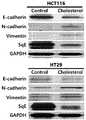 도 3은 콜레스테롤 처리에 의한 대장암 세포의 상피-중간엽 이행유도 및 대장암 세포의 생존 증가를 확인한 것이다.Figure 3 confirms the epithelial-mesenchymal transitional induction of colon cancer cells and increased survival of colon cancer cells by cholesterol treatment.