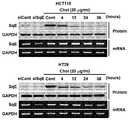 콜레스테롤 처리에 의한 SqE 및 p53 발현 감소확인을 위해 6 웰 플레이트에 세포를 동일한 양으로 심은 후 10 (HCT116) 및 20 (HT29)μM 콜레스테롤을 시간별로 (0, 4, 12, 24, 48 시간) 처리 후 RIPA 버퍼 (Invitrogen, USA)을 이용하여 세포내 단백질을 모은 후 각각에 대한 항체를 이용하여 웨스턴 블롯을 시행하였다. 사용된 항체는 표 2와 같다.To confirm the reduction of SqE and p53 expression by cholesterol treatment, the cells were planted in the same amount in 6-well plates and treated with 10 (HCT116) and 20 (HT29) μM cholesterol hourly (0, 4, 12, 24, 48 hours). Then, intracellular proteins were collected using RIPA buffer (Invitrogen, USA), and then Western blots were performed using antibodies to each. The antibodies used are shown in Table 2.