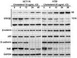 대장암 세포의 상피-중간엽 이행 및 SqE 단백질 분해를 확인하기 위해, 다음의 방법으로 수행하였다. 세포를 6 웰 플레이트에 심은 후 20μM 콜레스테롤을 매일 3일 동안 처리한 후 RIPA 버퍼 (Invitrogen, USA)을 이용하여 세포내 단백질을 모은 후 상피-중간엽 이행 표시자인 E-cahderin, N-cadherin, Viment과 GAPDH에 대한 항체를 이용하여 웨스턴 블롯 (western blot)을 수행하였다. 사용된 항체는 표 1과 같다.In order to confirm epithelial-mesenchymal transition and SqE proteolysis of colorectal cancer cells, the following method was performed. Cells were planted in 6-well plates, treated with 20 μM cholesterol daily for 3 days, and then intracellular proteins were collected using RIPA buffer (Invitrogen, USA) and then epithelial-mesenchymal transition markers E-cahderin, N-cadherin, and Viment. Western blot was performed using and antibodies against GAPDH. The antibodies used are shown in Table 1.