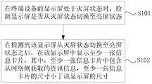 本申请实施例所提供方案中,在终端设备的显示屏处于灭屏状态时,检测该显示屏是否从灭屏状态切换至亮屏状态;在检测到该显示屏从灭屏状态切换至亮屏状态之后,在该显示屏中显示至少一张信息卡片,其中,信息卡片中包含从网络侧获取的资讯信息,信息卡片的尺寸小于该显示屏的尺寸。本方案中,在终端设备的显示屏从灭屏被切换到亮屏时,通过信息卡片向用户推送资讯信息,使得用户能够在切换亮屏和灭屏的空闲的零散时间内浏览到资讯信息,因此,提高了对用户的空闲的零散时间的利用率。In the solution provided by the embodiment of the present application, when the display screen of the terminal device is in the off-screen state, it is detected whether the display screen is switched from the off-screen state to the bright-screen state; when the display screen is detected to be switched from the off-screen state to the bright screen After the status, at least one information card is displayed in the display screen, wherein the information card includes information information acquired from the network side, and the size of the information card is smaller than the size of the display screen. In this solution, when the display screen of the terminal device is switched from the screen to the bright screen, the information information is pushed to the user through the information card, so that the user can browse the information information during the idle time of switching between the bright screen and the screen. Therefore, the utilization of the idle time of the user's idle time is improved.