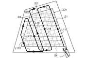 図9では、作業対象領域CAの形状が変形四角形である。そのため、メッシュ経路要素群の生成の基準となる辺は4つである。ここで、作業対象領域CAの形状が長方形または正方形である場合、メッシュ経路要素群の生成の基準となる辺は2つとなる。この場合、メッシュ経路要素群の構造はより簡単となる。In FIG. 9, the shape of the work target area CA is a deformed rectangle. Therefore, there are four sides serving as a reference for generating the mesh path element group. Here, when the shape of the work target area CA is a rectangle or a square, there are two sides serving as a reference for generating the mesh path element group. In this case, the structure of the mesh path element group becomes simpler.