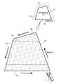 図9に、走行経路要素群の一例であるメッシュ直線群の作業対象領域CAへの配置の概略が示されている。メッシュ経路要素算出部601によって、収穫機1の作業幅をメッシュ間隔として、作業対象領域CAをメッシュ直線で埋め尽くすように走行経路要素群が算出される。作業対象領域CAは、上述したように、圃場の境界から内側に向かって作業幅で3~4周の周回走行によって形成された外周領域SAの内側の領域である。そのため、基本的には、作業対象領域CAの外形は、圃場の外形と相似することになる。しかし、メッシュ直線の算出を容易にするため、作業対象領域CAがほぼ多角形、好ましくはほぼ四角形になるように、外周領域SAを作り出す場合もある。図9では、作業対象領域CAの形状は、第1辺S1と第2辺S2と第3辺S3と第4辺S4とからなる変形四角形である。FIG. 9 shows an outline of the arrangement of the mesh straight line group, which is an example of the travel route element group, in the work target area CA. The travel route element group is calculated by the mesh route