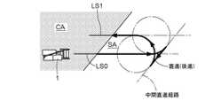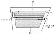 図1には、作業車自動走行システムにおける作業車の作業走行が模式的に示されている。この実施形態では、作業車は、作業走行として、走行しながら農作物を収穫する収穫作業(刈取作業)を行う収穫機1であり、一般に普通型コンバインと呼ばれている機種である。収穫機1によって作業走行される作業地は圃場と呼ばれる。圃場における収穫作業では、収穫機1が畦と呼ばれる圃場の境界線に沿って作業を行いながら周回走行した領域が外周領域SAとして設定される。外周領域SAの内側は作業対象領域CAとして設定される。外周領域SAは、収穫機1が収穫物の排出や燃料補給を行うための移動用スペース及び方向転換用スペース等として利用される。外周領域SAの確保のため、収穫機1は、最初の作業走行として、圃場の境界線に沿って3~4周の周回走行を行う。周回走行では、一周毎に収穫機1の作業幅分だけ、圃場が作業されることになるので、外周領域SAは収穫機1の作業幅の3~4倍程度の幅を有する。このことから、特別に注記しない限り、外周領域SAは既刈地(既作業地)として扱われ、作業対象領域CAは未刈地(未作業地)として扱われる。なお、この実施形態では、作業幅は、刈取り幅にオーバーラップ量を減算した値として取り扱われる。しかしながら、作業幅の概念は、作業車の種類によって異なる。本発明での作業幅は、作業車の種類や作業種類によって規定されるものである。[Outline of automatic driving]