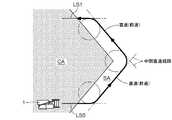 なお、外周領域SAにおいても、経路管理部60によって走行経路要素群が設定されている。外周領域SAにおいて設定された走行経路要素は、収穫機1が外周領域SAを走行する際に用いられる。外周領域SAにおいて設定された走行経路要素には、離脱経路、復帰経路、Uターン走行用中間直進経路などの属性値が与えられる。離脱経路は、収穫機1が作業対象領域CAを離脱して外周領域SAに入るために用いられる走行経路要素群を意味する。復帰経路は、収穫機1が外周領域SAから作業対象領域CAでの作業走行に復帰するために用いられる走行経路要素群を意味する。Uターン走行用中間直進経路(以下単に中間直進経路と略称する)は、外周領域SAでのUターン走行に用いられるUターン走行経路の一部を構成する直線状の経路である。即ち、中間直進経路は、Uターン走行の開始側の旋回経路とUターン走行の終了側の旋回経路とを接続する直線部分を構成する直線状の走行経路要素群であって、外周領域SAにおいて作業対象領域CAの各辺に平行に設けられた経路である。また、当初は渦巻き走行を行い、途中で直線往復走行に切り換えて作業走行を行う場合、渦巻き走行によって、未刈地は、全辺において作業対象領域CAよりも小さくなるため、効率良く作業走行を行うには、作業対象領域CA内でUターン走行をする方が、わざわざ外周領域SAにまで移動しなくても良いため、無駄な走行がなく、効率的である。そこで、作業対象領域CAでUターン走行が実行される場合には、中間直進経路は、未刈地の外周ラインの位置に応じて、内周側へ平行移動される。Note that the travel route element group is also set by the